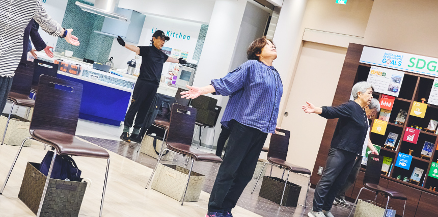 毎日のくらしに役立つ講座や健康づくりにぴったりの体操など、シニア世代の皆さまも気軽に楽しめる講座を開催しています。参加された方からは「同世代の仲間とおしゃべるすることが楽しみ」「1人ではできないことが体験できて楽しい」といったお声をいただいています。